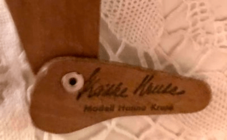 Dukken er fint malet og har uldent pålimet hår – under hendes venstre fod et stemplet: Käthe Kruse —Model Hanne Kruse….. Frønte Hanne Mikkelsen fortalte desuden, at hun forgæves havde søgt alle vegne efter oplysninger om dukken, så nu var gode råd dyre….. Min første tanke var, at dukken var en slags skabelon —således at tøjet kunne præsenteres på en ny og sjov måde, idet jeg for længe siden fik et par lignende ”skabelondukker” à la Barbiedukkerne. Men jeg måtte da hellere spørge Angelika Salzwedel, der interesserer sig meget for Käthe-Krusedukker, for måske hun vidste noget om dukken. Og BINGO, Angelika sendte mig oplysninger om dukken fra Thomas Dahls Bog 2008—Käthe kruse Katalog und Preisführer med beskrivelse på tysk og engelsk…