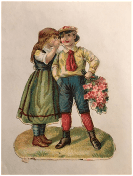 I England kalder dem stadig i dag for scraps, dvs. afklip, eller papirbilleder som klippes ud og atter sættes ind i album (også her i Danmark taler man om scrapbøger eller udklipsbøger: oversætteren)….