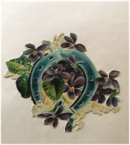 En hestesko som lykkebringer: egentlig skal hesteskoens åbning være foroven, således at man kan modtage heldet (bemærkning fra samleren)!