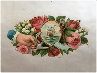 Min version er, fortæller Angelika, at man til poesibøgerne, scrapbøgerne osv. forsøgte at eftergøre motiverne fra de gamle prøveklude, og således er de første gamle glansbilledmotiver da også de motover, som vi kender fra de gamle, smukke prøveklude. Derfor blev jeg meget interesseret i symbolikken både fra prøvekludene og fra glansbillederne.